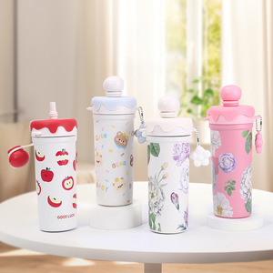 轻奢繁花新款保温杯大容量316不锈钢吸管杯户外便携浮球随行杯
