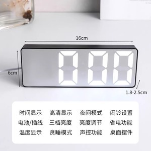 夜光镜面时钟led数字显示器桌面钟表时间表摆台式ins摆件电子闹钟