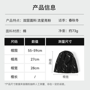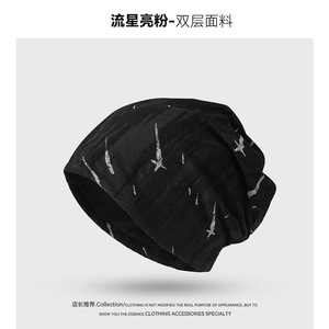 春秋薄款套头帽韩版大头围堆堆帽显脸小户外包头帽子流星刺绣冷帽