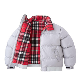 跨境外贸新款撞色格子拼接内衬保暖棉服男女款立领街头时尚棉服