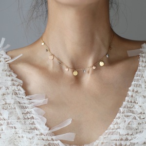 INS风简约小亮片圆形锁骨链 钛钢金色三色电镀玫瑰金项链 XL654