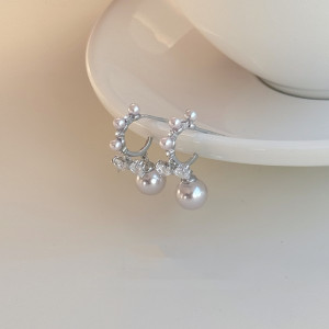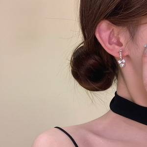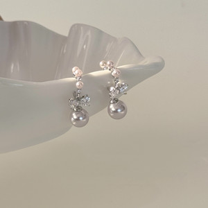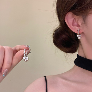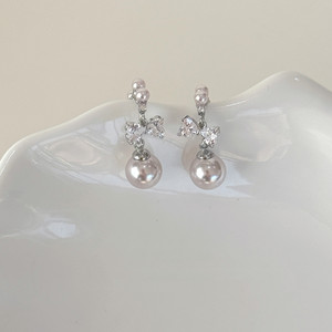 曼塔玫瑰珍珠蝴蝶结耳环银针