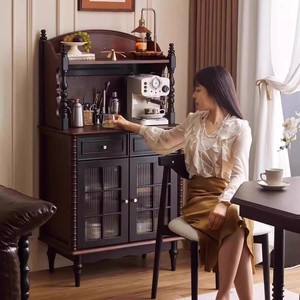 法式实木餐边柜家用客厅靠墙置物茶水柜餐厅复古多功能收纳储物柜