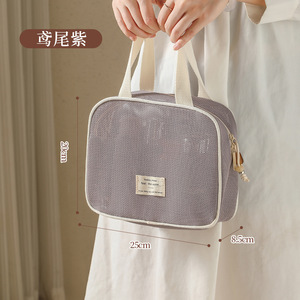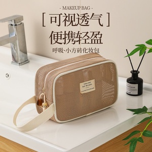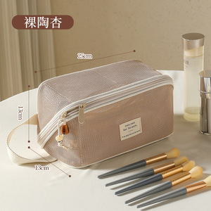 跨境多功能分区化妆包女大容量手提网纱收纳包旅行洗漱便携化妆包