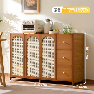 中式餐边柜藤编储物柜家用餐厅茶水柜置物柜厨房收纳柜子橱柜边柜