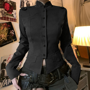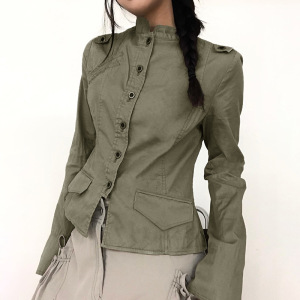 欧美外贸工装风女装街头潮人立领分割修身辣妹休闲长袖外套秋批发