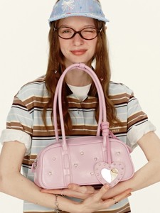 小众设计铆钉波士顿枕头包粉色 不接受退换货