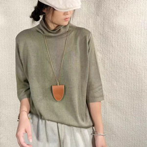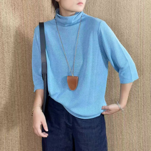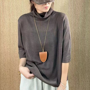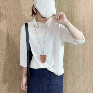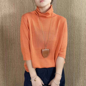 秋季新品文艺风纯色套头打底上衣女针织衫堆堆领毛衣