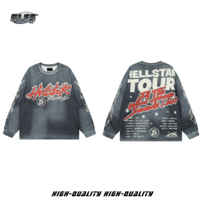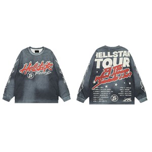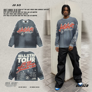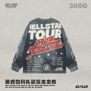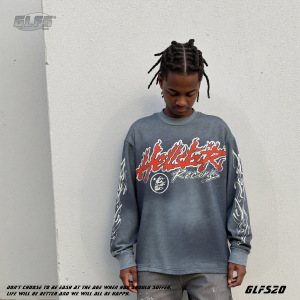 GLFS 美潮炸街做旧复古长袖体恤 男式外贸上衣套头卫衣涂鸦星摇滚