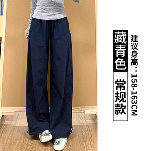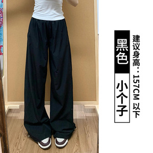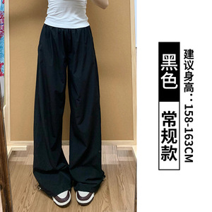 黑色工装裤女夏薄款美式直筒阔腿裤宽松垂感休闲小个子速干运动裤