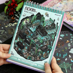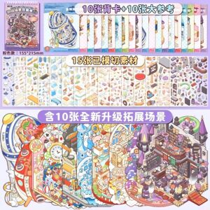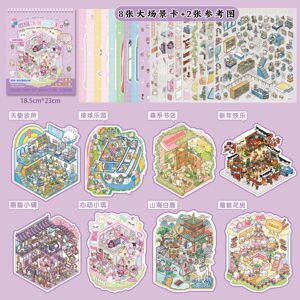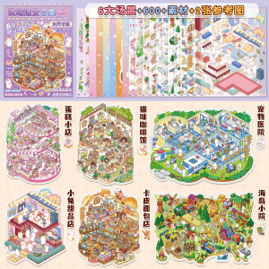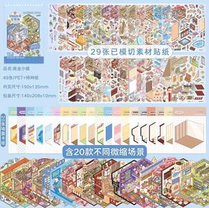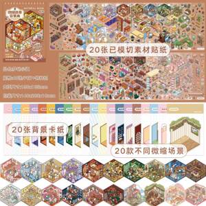多款微缩造景贴纸合集本卡通微恐小镇3D立体小屋儿童解压玩具贴画
