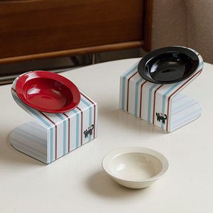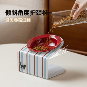 陶瓷宠物猫咪碗护颈椎防打翻喝水碗粮食盆高脚亚克力架斜口碗出口