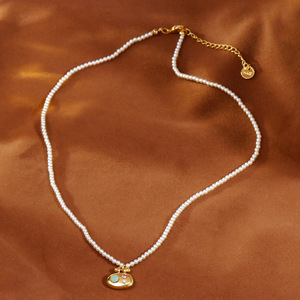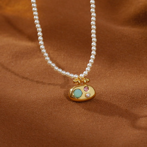 2mm极细施家仿珍珠项链女时尚设计感几何吊坠颈链 2025年抖音爆款