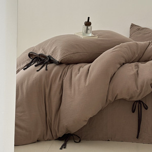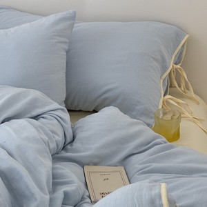 韩系少女心全棉四件套裸睡学生宿舍双层纱纯棉三件套床单床笠纯色