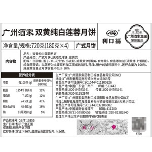 广州酒家双黄白莲蓉利口福经典五仁蛋黄纯正白莲蓉中秋月饼礼盒