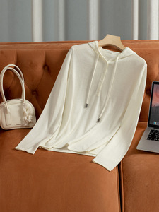 【束间绒语】半门襟抽绳帽衫100羊毛衫女秋季薄款长袖连帽针织衫