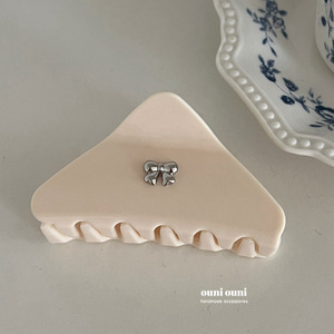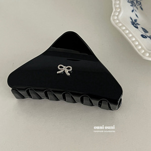 小香风蝴蝶结抓夹高级感黑白三角形盘发鲨鱼夹女通勤中号发抓发饰