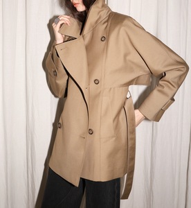 素舶 JI典斜纹立体廓形翻领短风衣外套女