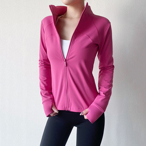 秋冬新款加绒加厚瑜伽服上衣女长袖修身显瘦立领拉链健身运动外套