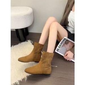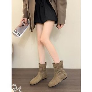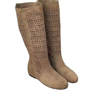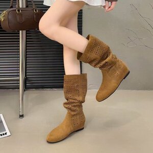 2025秋冬新款欧美镂空透气高筒骑士凉靴绒面内增高长靴子女不过膝