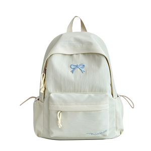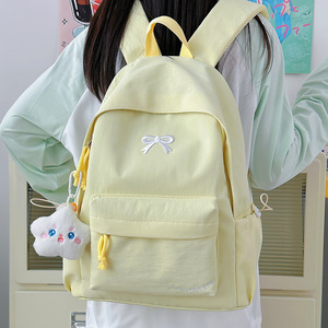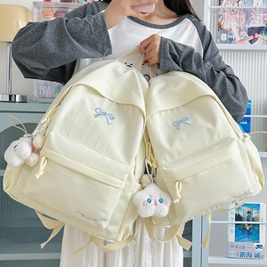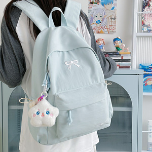 大学生双肩包初中生电脑包韩版简约少女蝴蝶结书包大容量背包女