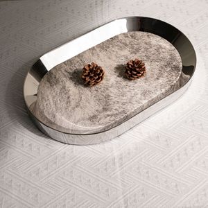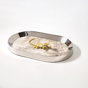 现代简约金属椭圆马毛首饰收纳托盘摆件客厅卧室玄关软装家居饰品