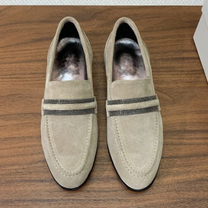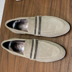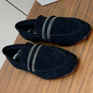 意大利BC春秋新款麂皮乐福鞋纯手工串珠复古休闲单鞋一脚蹬懒人鞋