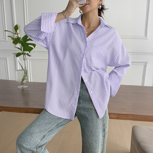 跨境欧美休闲度假条纹长袖高级衬衫女装2025秋冬亚马逊外贸独立站