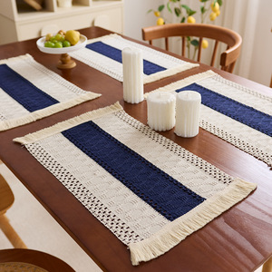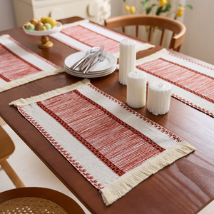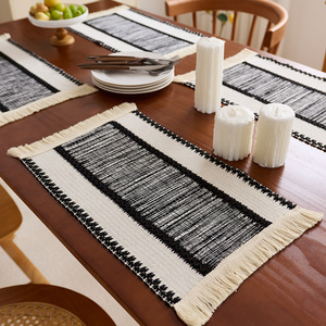 跨境棉麻风餐垫布艺流苏餐具垫拼接编织提花隔热碗垫北欧风布艺垫