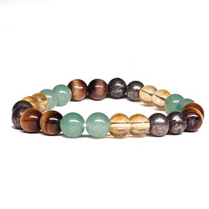男士手链虎眼石磁石黄水晶绿东陵弹力绳手链节日礼物混色串珠手链