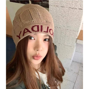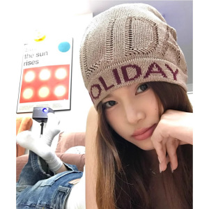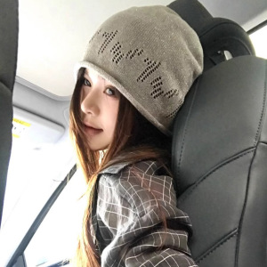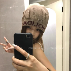 双版本字母针织包头帽女薄款百搭冷帽卷边堆堆帽