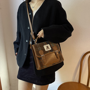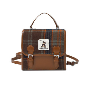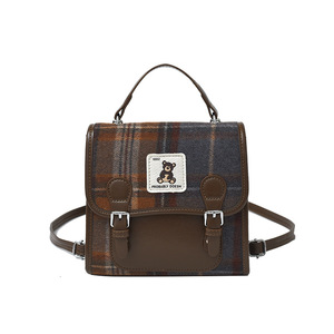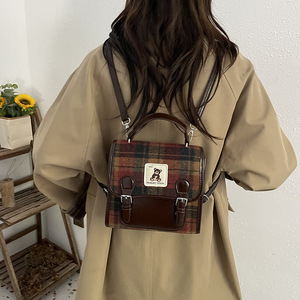 毛呢格子手提小包包女2025新款潮时尚学院风双肩包秋冬复古斜挎包