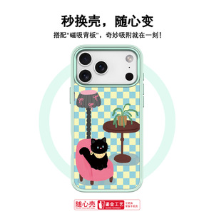 适用苹果17pro手机壳高级感16可换背板15promax磁吸手机壳格纹猫
