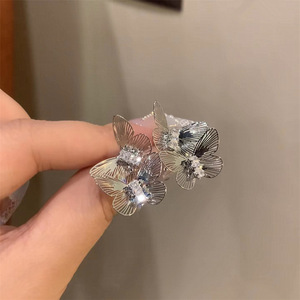 欧美银色镂空复古双蝴蝶锆石耳环女小众设计感精致时尚耳饰品耳钉