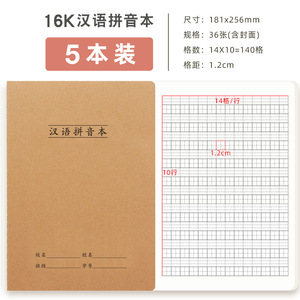 36张牛皮纸16K汉语拼音本拼音田字格小学生B5大号作业本32开小号
