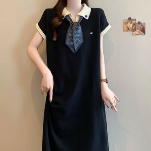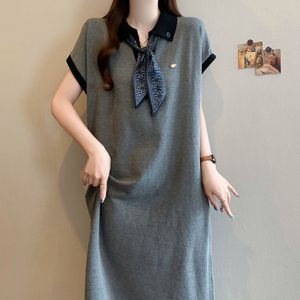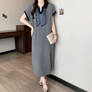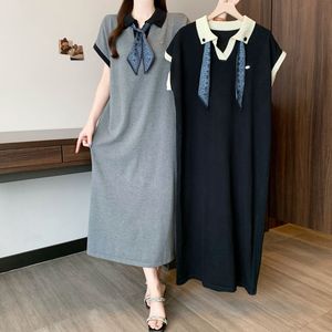 巨好看宽松领连衣裙女夏季大码微胖显瘦遮肚高级感直筒长裙