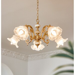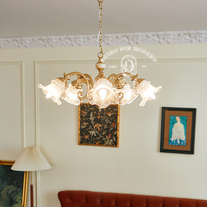 法式复古全铜花朵吊灯 中古风欧式创意客厅卧室餐厅书房灯