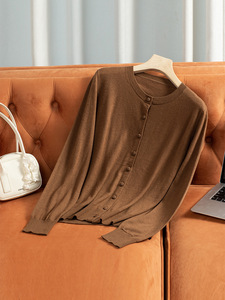 【绒龛锁秋】包扣设计圆领羊毛开衫女慵懒宽松显瘦阔版针织打底衫