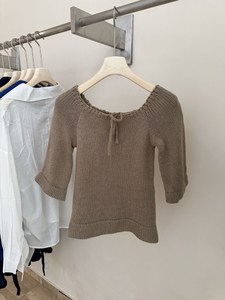 2025秋季新款 气质氛围感毛织编织一字肩方领两穿中袖复古毛衣