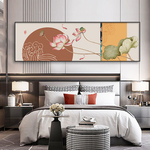 新中式主卧室床头装饰画书房茶室民宿酒店挂画荷花沙发背景墙壁画