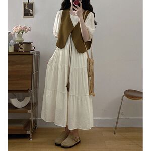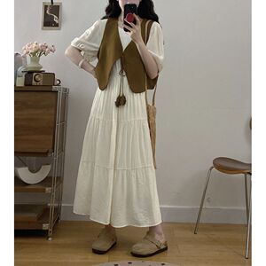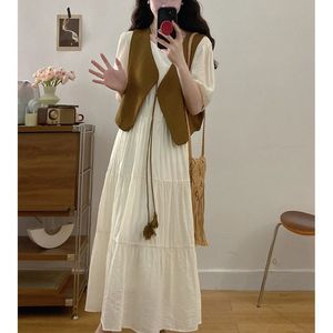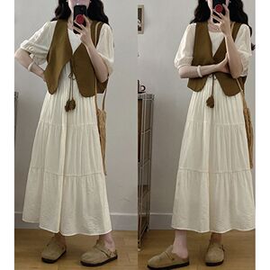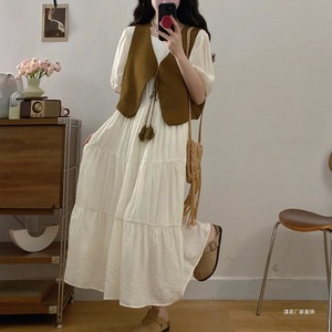 大码梨形身材短袖连衣裙女2025新款夏季胖遮肚显瘦裙子马甲套装