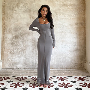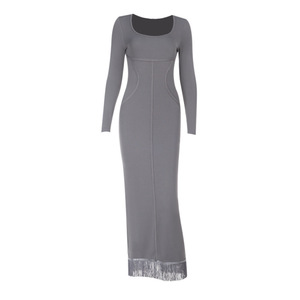 ZX25216PFO欧美跨境流苏长袖针织连衣裙2025秋冬新款百搭长袖女装