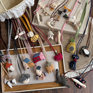 日韩新款布艺ins卡通动物项饰手工塞棉宝宝可调节项链配饰挂件