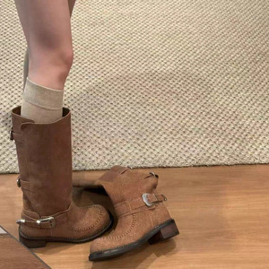 磨砂复古长筒靴女2025秋季新款皮带扣骑士靴不过膝两穿靴子长靴潮