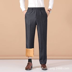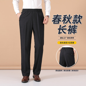 春秋款男士松紧腰休闲裤加绒加厚中老年爸爸裤工作黑色商务西裤