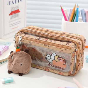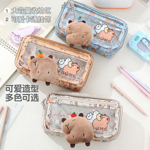 大容量卡皮巴拉笔袋耐脏铅笔袋学生文具ins透明文具袋ins风文具