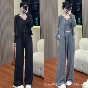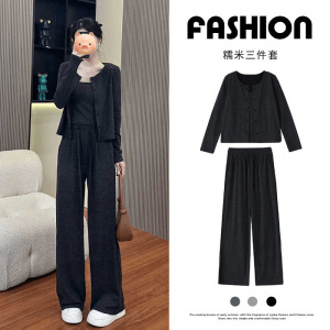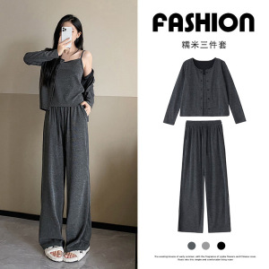 (开衫+吊带+裤子)3件套慵懒风糯米套装春秋款开衫外套吊带阔腿裤