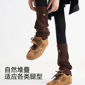 2025秋冬新款镂空网眼中筒女保暖袜套日系堆堆袜黑色袜套针织袜套