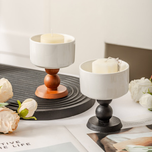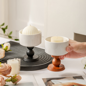 香薰蜡烛台法式高脚杯陶瓷轻奢高档摆件复古蛋糕装饰氛围感