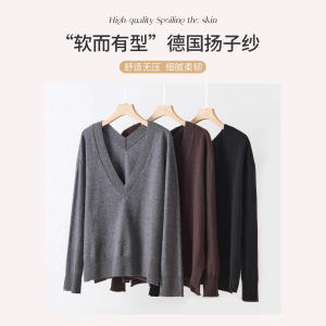 精纺100%德国进口扬子纱线2025年套头常规款通勤单件长袖V领时尚